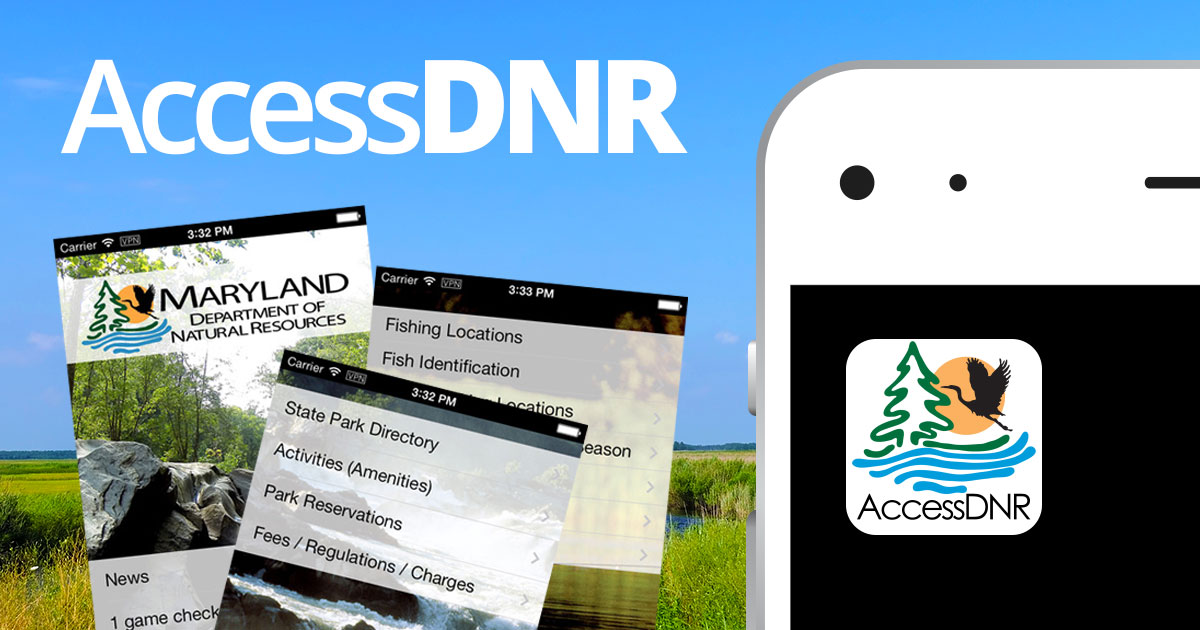 ANNAPOLIS, Md. – March 12, 2014 - Enjoying Maryland’s great outdoors has never been easier thanks to the Maryland Department of Natural Resource’s new mobile app. The AccessDNR app provides the state’s hunters, anglers, boaters, park-goers ─ anyone seeking outside adventure ─ all of the latest in nature-related recreation, information and news right at their fingertips. The free AccessDNR mobile apps are now available for download in the app stores for Apple and Android devices and can also be accessed through the state’s official website, www.Maryland.gov or DNR’s website, www.dnr.maryland.gov.