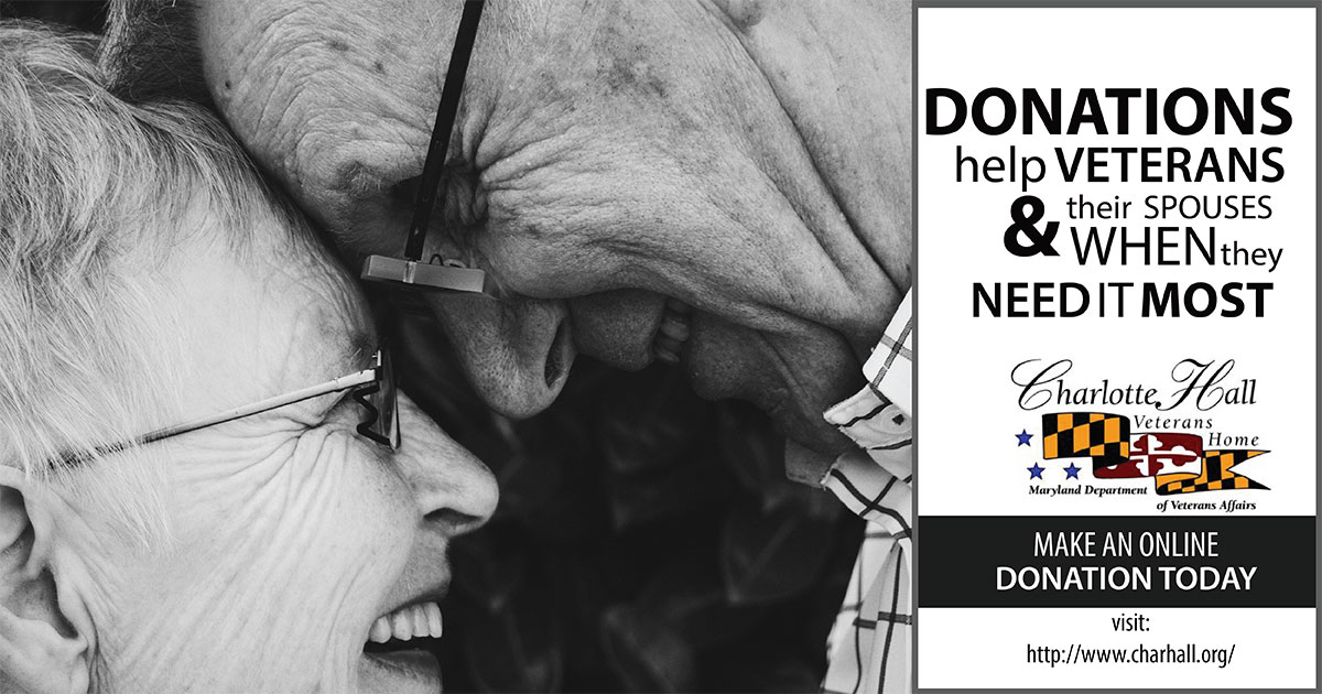 ANNAPOLIS, Md. – Giving back to veterans and their spouses who have given so much through their service has never been easier. Charlotte Hall Veterans Home now accepts monetary donations online. Charlotte Hall is a program sponsored by the Maryland Department of Veterans Affairs, providing assisted living and skilled nursing, long-term care services to Maryland veterans and eligible spouses. Donations play an integral role in ensuring residents enjoy the comforts of life in or outside of the home. Medical services, final honors arrangements, and personal care items such as toiletries and clothing are some of the ways funds received support residents.