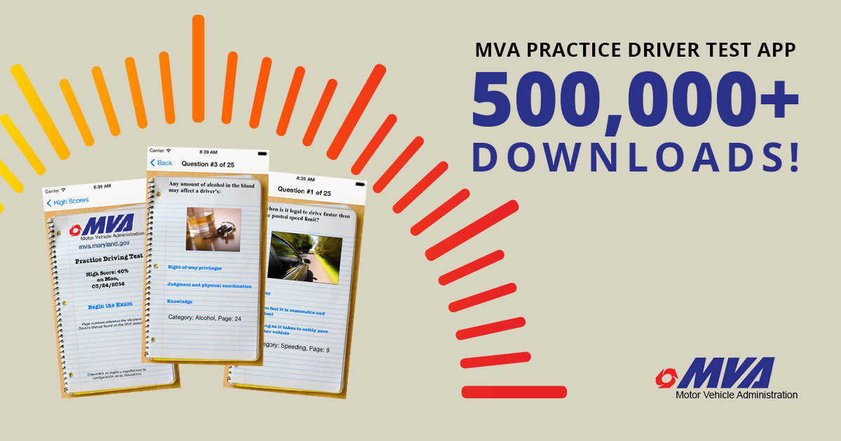 Maryland Practice Driving Test mobile apps provided by the Maryland Motor Vehicle Administration (MVA) have reached a monumental milestone of half a million downloads from the iOS and Android App Stores. Launched just over three years ago, the