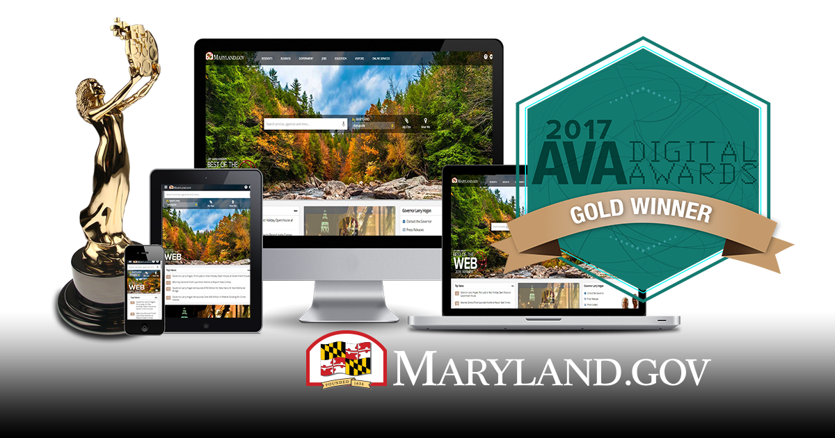 ANNAPOLIS, Md. – Maryland’s award-winning website, www.Maryland.gov, recently earned a Gold AVA Digital Media Award in the Government Website category. This honor recognizes that Maryland.gov has contributed to the evolution of digital media and incorporated interactivity in the website design to better serve the citizens in the state of Maryland.